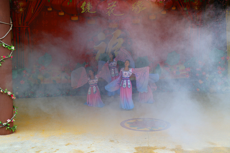 旅途第一站來到奇幻鏡花緣。鏡花緣旅游區(qū)位于河源萬綠湖碼頭西南面,同事們沿著百花路觀賞到紅顏洞后的客家文化表演,全程綠樹成蔭,景色宜人,竟真的與清代著名小說家李汝珍書中描述的百花仙子降生之地,有許多不謀而合之處,她的美麗奇幻不容訴說,讓人融情入境,仙氣飄然。