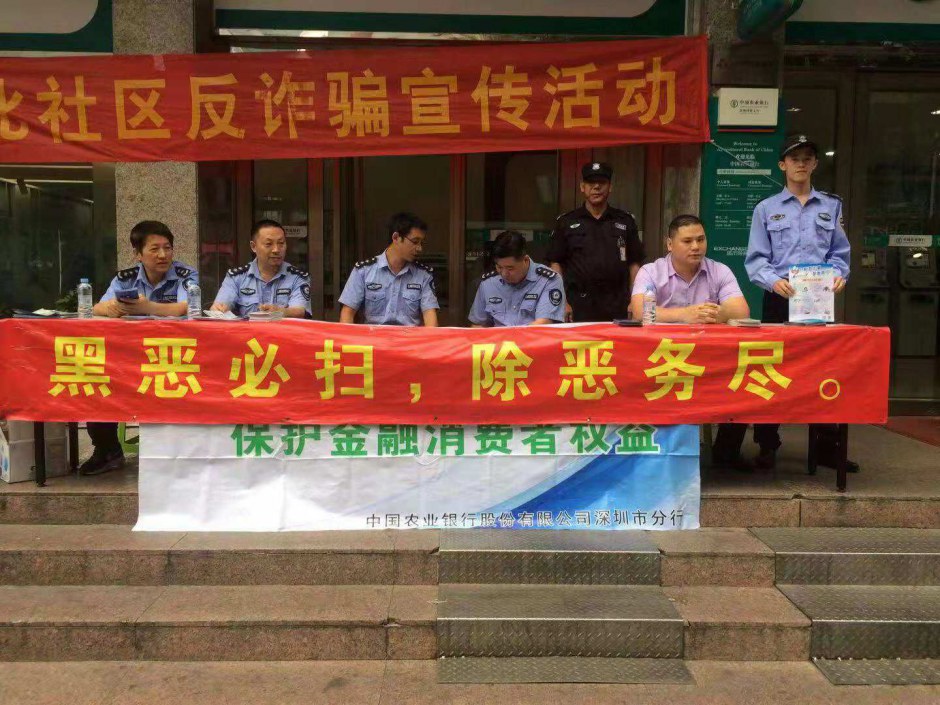 為深入推進掃黑除惡專項斗爭工作,貫徹落實上級公安機關相關文件精神,把要求落到實處,11月2日,國保安防集團組織員工積極配合、參加深圳農(nóng)行國貿(mào)支行與地方派出所聯(lián)合開展的“黑惡必掃、除惡務盡”掃黑除惡專項斗爭法治宣傳活動。