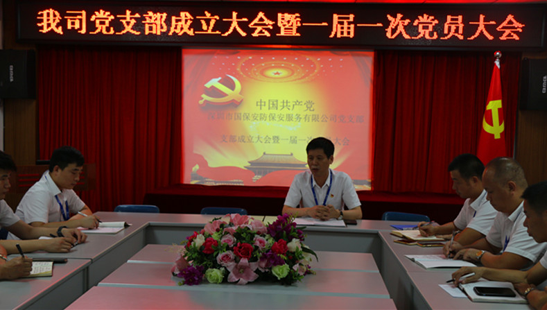 近日,中共深圳市國保安防保安服務有限公司黨支部成立大會暨一屆一次黨員大會勝利召開,公司全體黨員參會,會議由公司黨支部第一任書記吳偉清同志主持。