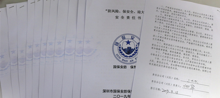 文件學習完畢后,由公司員工代表吳良輝同志代表公司表決心,我們要進一步提高思想政治覺悟,思想上高度重視、行動上狠抓落實、工作上履職盡責,確保責任轄區、本職崗位的高度安全穩定。稍后,公司組織各大隊、分公司及相關部門負責人簽署“防風險、保安全、迎大慶”安全責任書,進一步提高公司全體員工的思想認識,從根本上杜絕各類問題隱患的發生,確保國慶期間的高度安全穩定。
